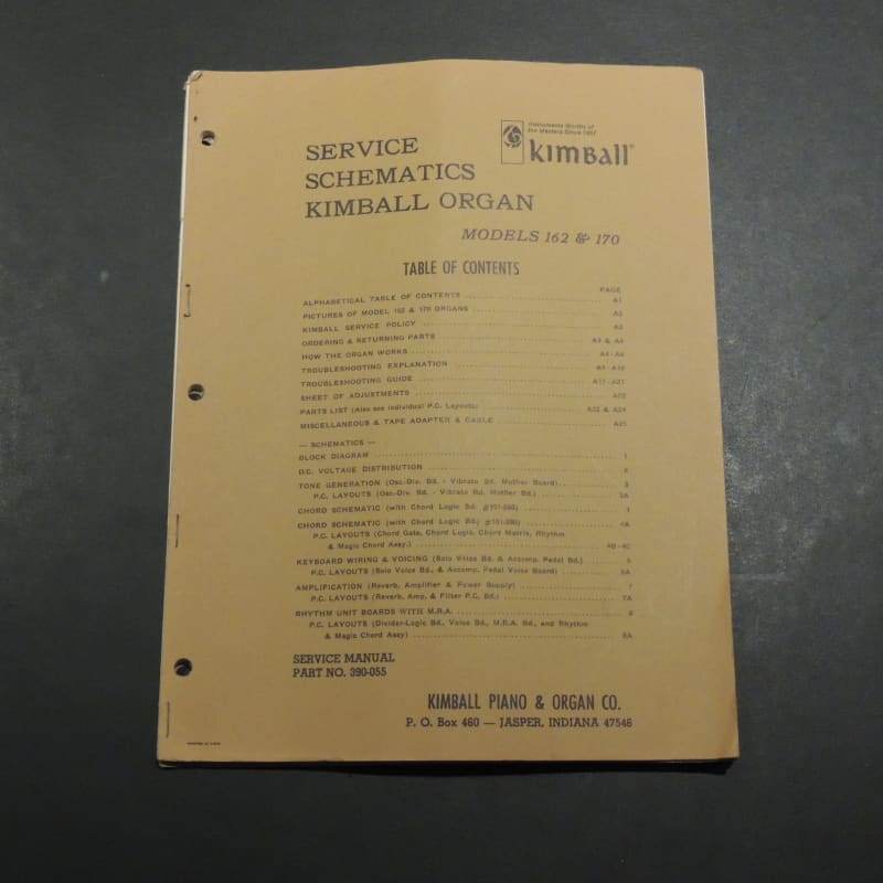 The Kimball Models 162 & 170 Service Manual in excellent condition.